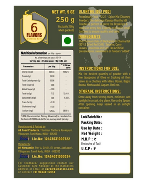 Discover the goodness of Ulunthu (Blackgram) Idli Podi, a traditional South Indian chutney powder that combines authentic taste with essential health benefits. Rich in protein and energy-boosting nutrients, this blend is crafted to complement your meals while keeping them both healthy and delicious.