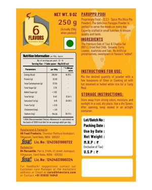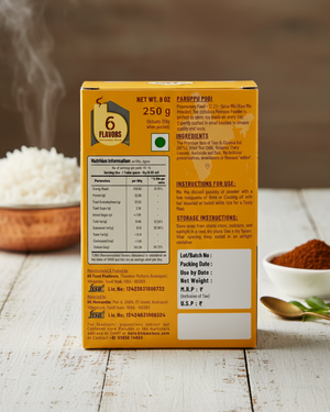 Relish the comforting taste of Paruppu (Dal) Podi, a protein-rich South Indian rice mix powder that brings both nutrition and flavor to your meals. Made with carefully selected natural ingredients, this blend is perfect for everyday cooking while staying true to authentic traditions.